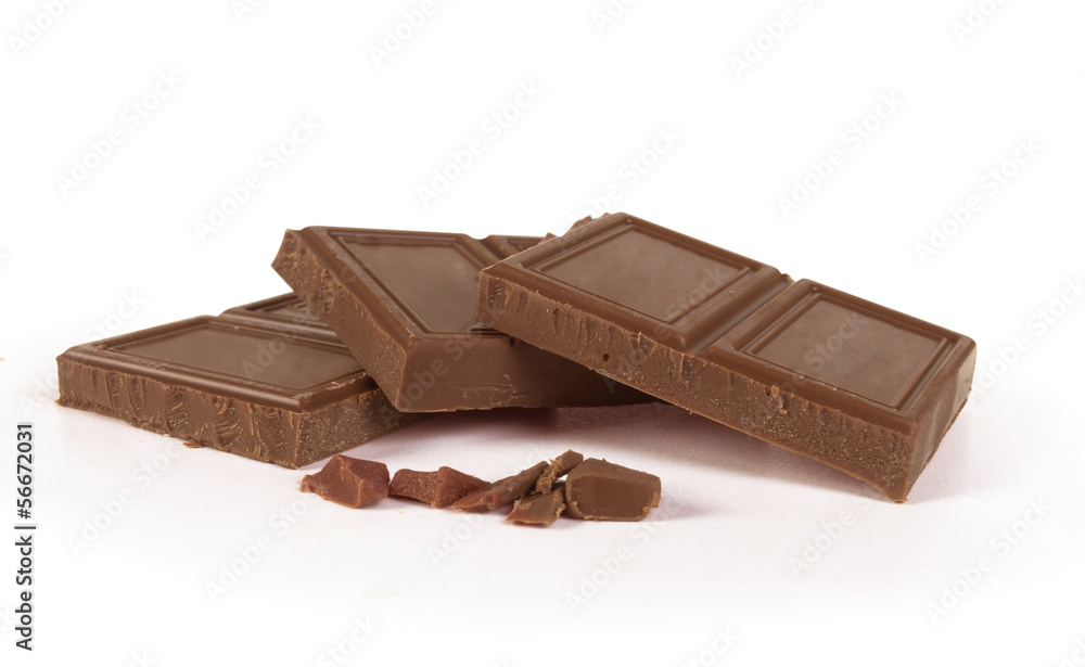 Chopped chocolate bars isolated on white background