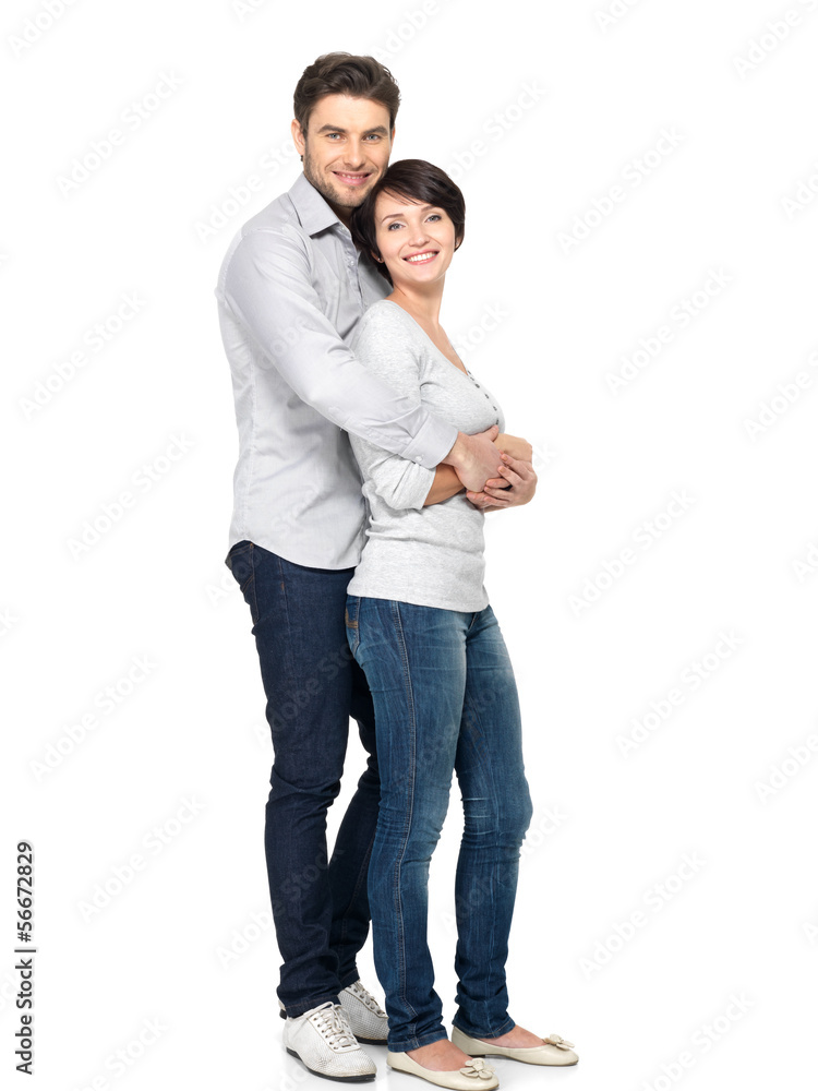 Full portrait of happy couple isolated on white