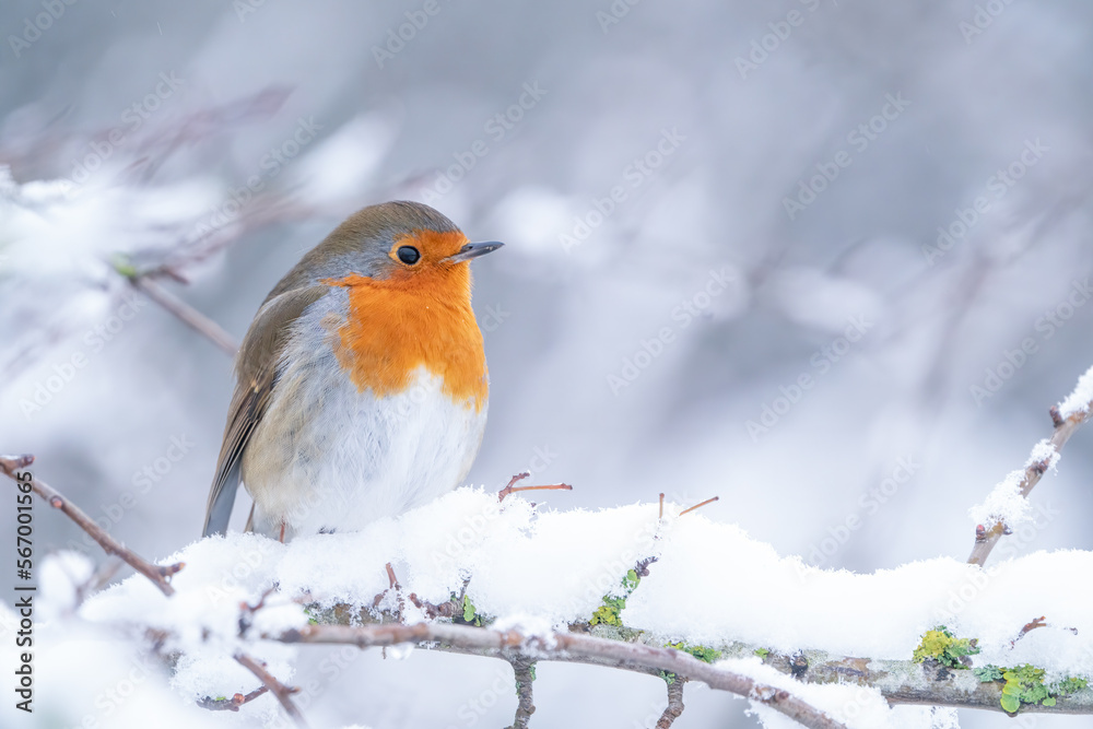 robin on a branch in the snow