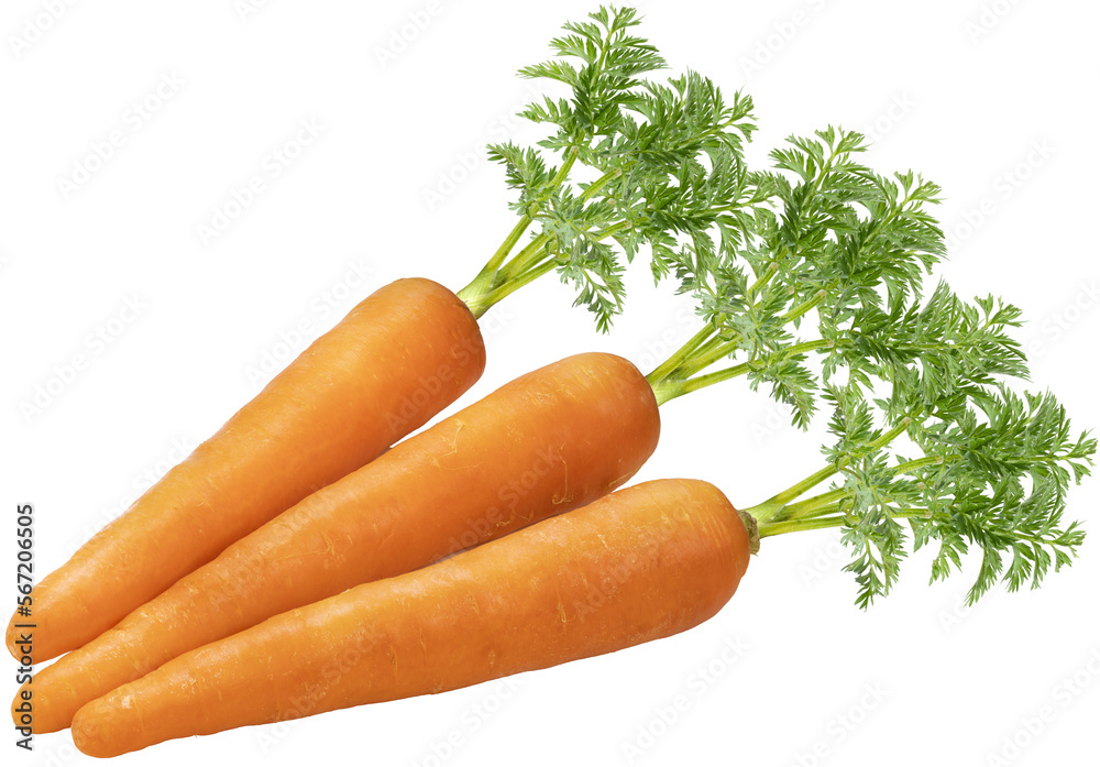 Fresh Carrot with leaf isolated on white background, Orange carrot on White Background With clipping path