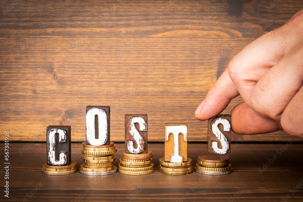 COSTS. Business, economy and finance concept. Money on a wooden background
