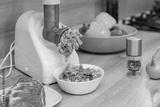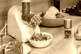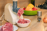 cooking homemade minced meat, mincing meat in an electric meat grinder