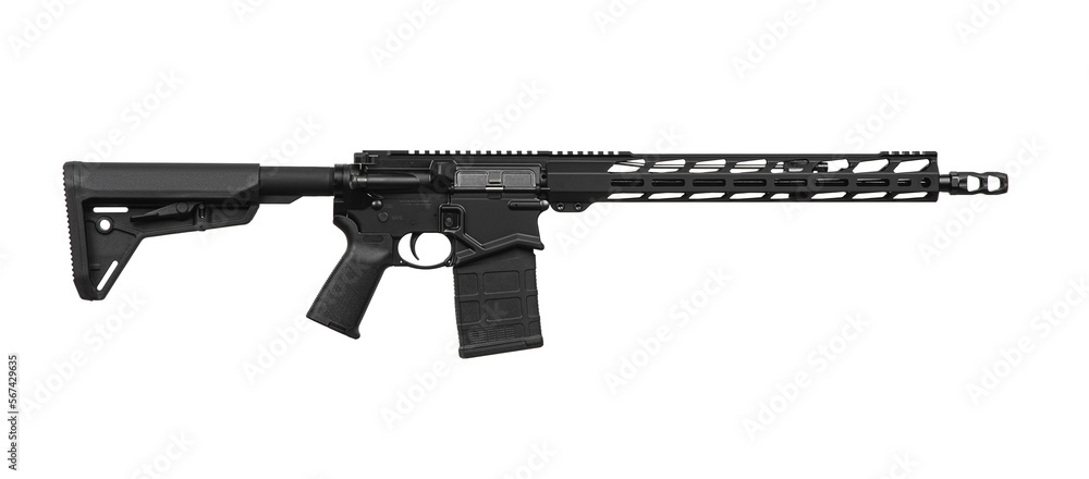 Modern automatic rifle isolated on white background. Weapons for police, special forces and the army. Automatic carbine. Assault rifle on white.