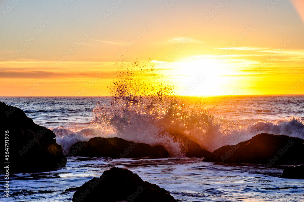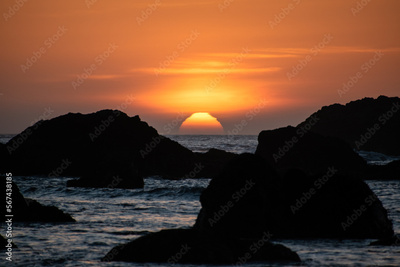 Sun Going Down Over Horizon Along Trinidad, CA Coast in Humboldt County