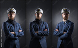 Portrait of a handsome sailor over black background. Shipping, navigation, marine, navy concept.