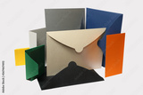 Set of different postal envelopes. Advertising of stationery. Packaging for postal items. Multicolored envelopes