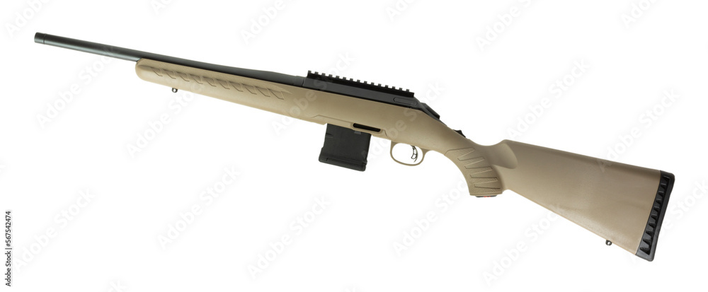 Beige bolt action rifle on white