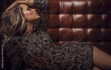 Fashion photo of young magnificent woman in luxury dress.
