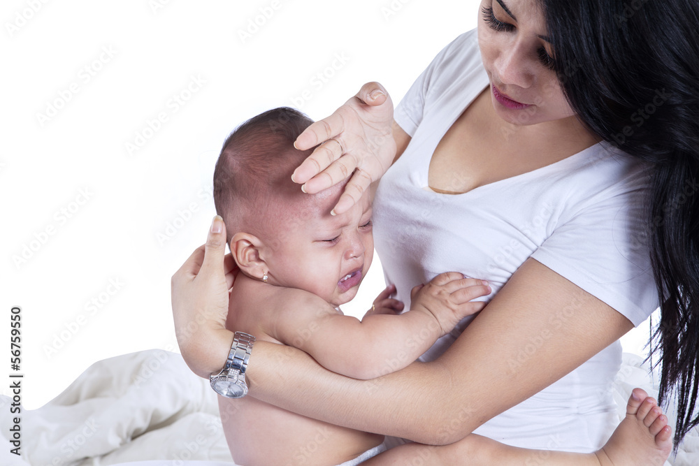 Mother checking her daughter's fever