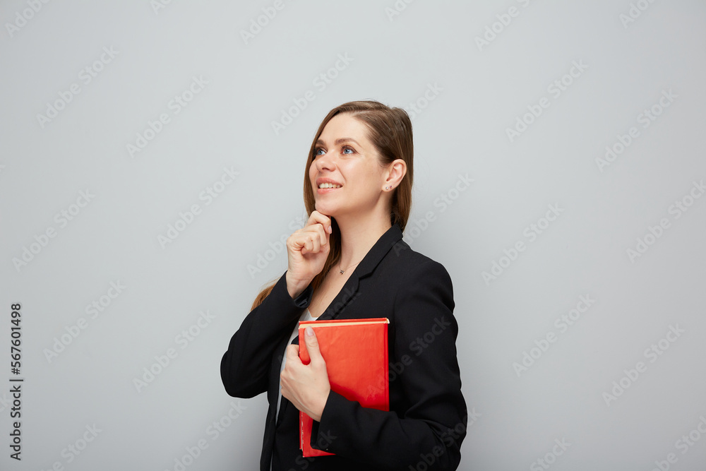 Portrait of thinking girl student or woman teacher.