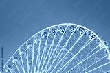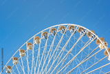 Ferris wheel on the blue sky background. Old rusty Ferris wheel. Attractions and recreation park.