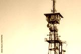GSM antennas on a high tower against the blue sky, 5g, 4g antennas for cellular communication