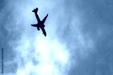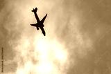 The plane is falling. Plane crash, uncontrolled aircraft in a tailspin