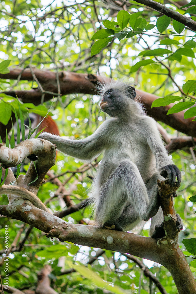 Wooden bridge in dense mangrove forest. Tanzania, Zanzibar. Africa. Jozani national park