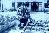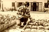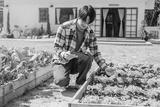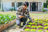 Asian man working in organic farm morning routine harvesting homegrown produce vegetables at Home