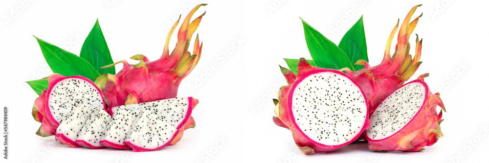 Dragon fruit, pitaya isolated on white background.