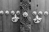 Traditional arab zanzibar wooden door and doorway ornately carved and decorated with brass fittings