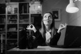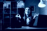 Funny Office Worker Procrastinating Feeling Bored Acting Silly. Carefree zen employee finding balance talking a break from work