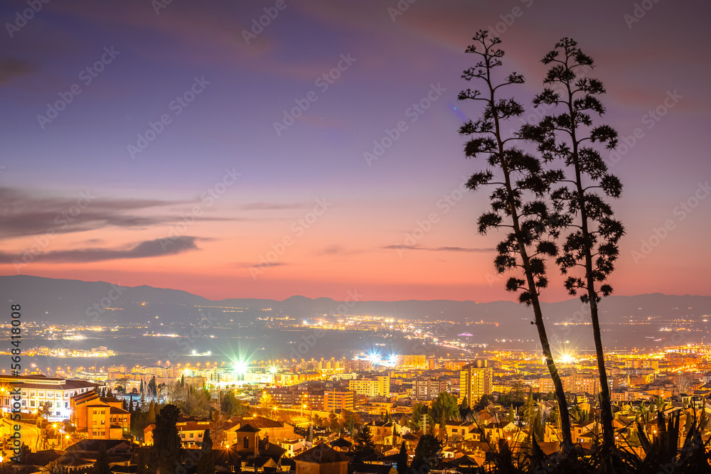 Scenic evening panoramic view of Granada from Albayzin