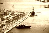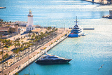 Malaga yachting harbor and lighthouse aerial view