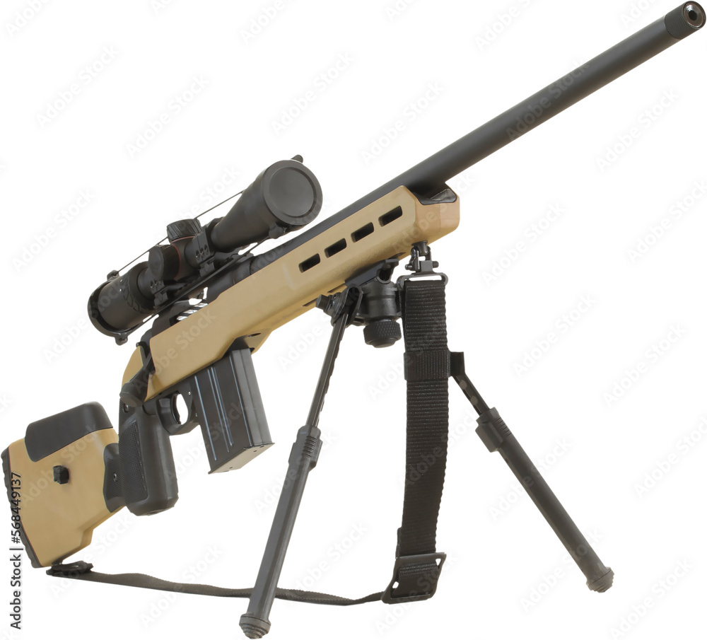 Precision bolt action rifle with scope and bipod