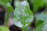 Powdery mildew Erysiphe betae fungal disease on sugar beet leaf.