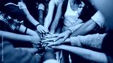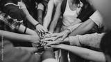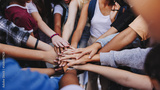Multicultural teenagers expressing their unity and teamwork