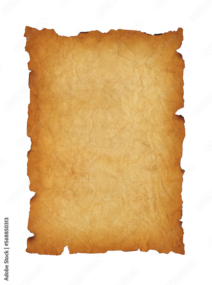 Old mediaeval paper sheet. Parchment scroll isolated on white