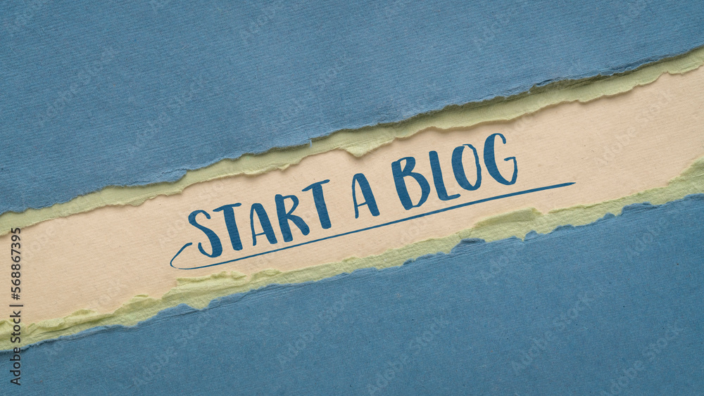 start a blog - motivational note on an art paper, web banner