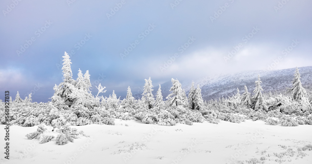 Winter mountain panorama, Karkonosze Mountains, Poland.