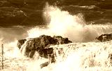 rough sea, waves of the ocean crashing into the rocks and splashing