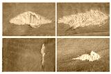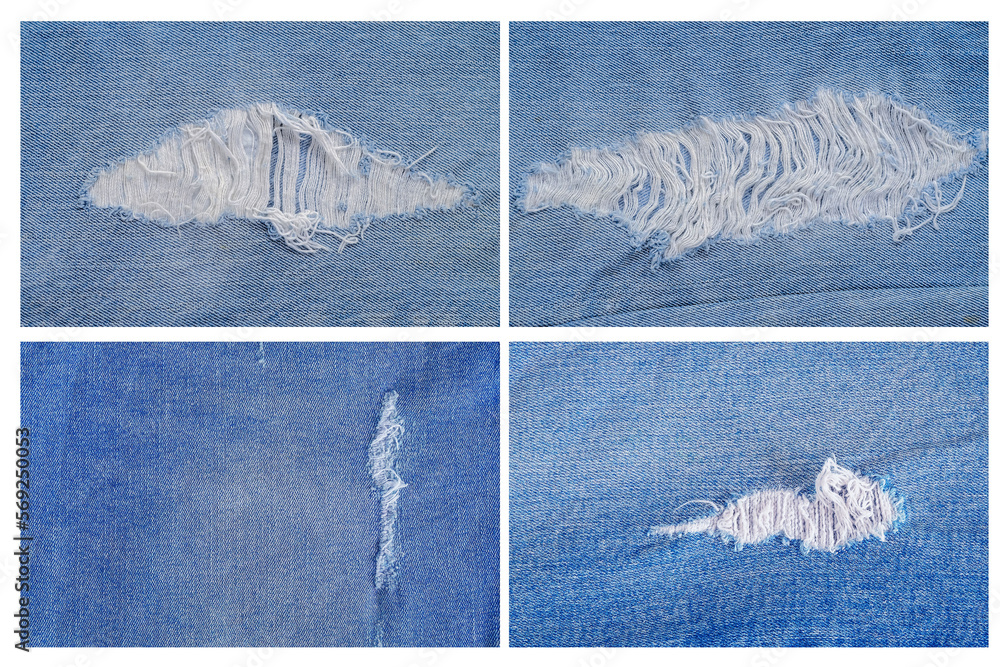 set of tear jeans textures background.