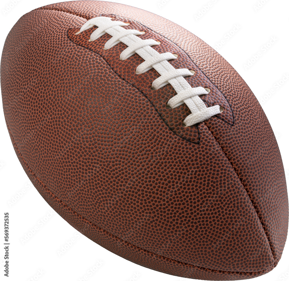 Leather American football ball isolated on white background, American football ball sports equipment on white PNG File.