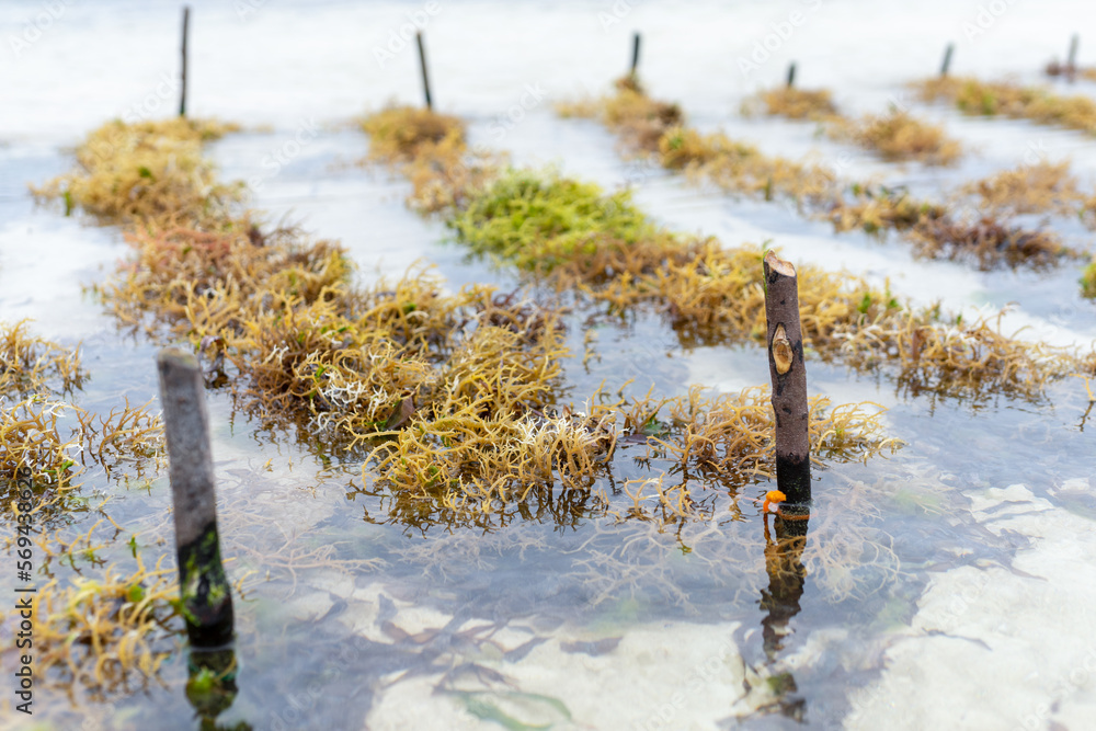 Zanzibar - A place where algae are grown using traditional methods and the ocean's outflow helps them grow.