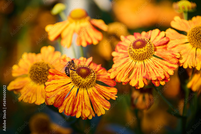 Bee on a flower in the garden. Shallow depth of field.