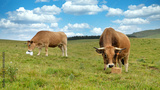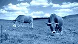 A cows licking a salt lick in the mountain pasture. Salt lick is a simple way to provide animals with a complement of mineral salts.