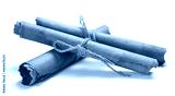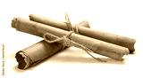 Medieval manuscripts or scrolls on a white background