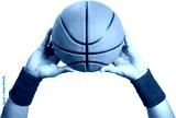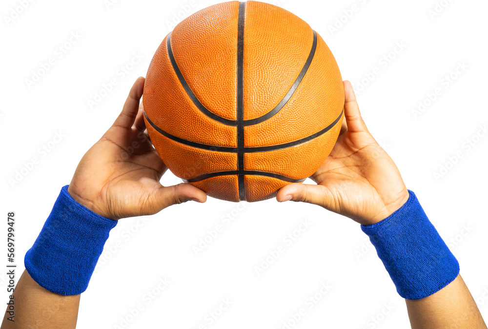 Basketball player about to throw a basketball ball isolated on white background, PNG file.
