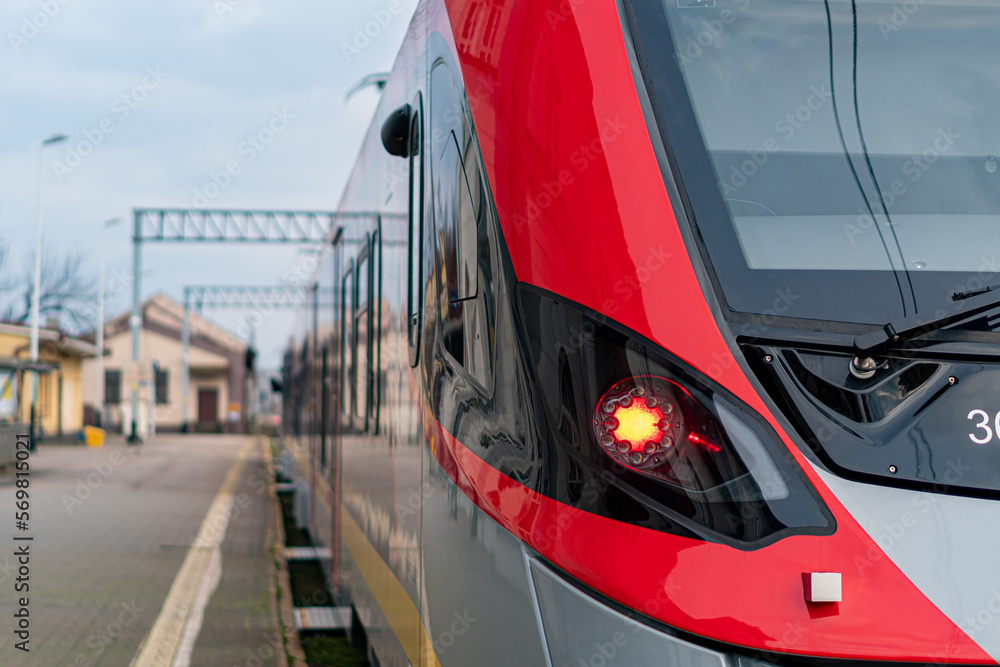 Modern Polish electric regional train's headlights