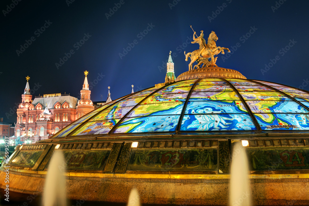 Saint George statue on Glass cupola in Manege Square, Moscow, Russia