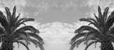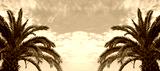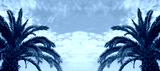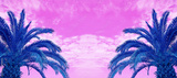 Pop Art Surreal Style of Vibrant Gradient Blue Two Palm Trees on Pastel Purple Sky