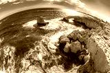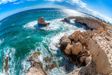 Wide angled shot of rocky coast near Agia Napa, Cyprus, with natural stone arch.