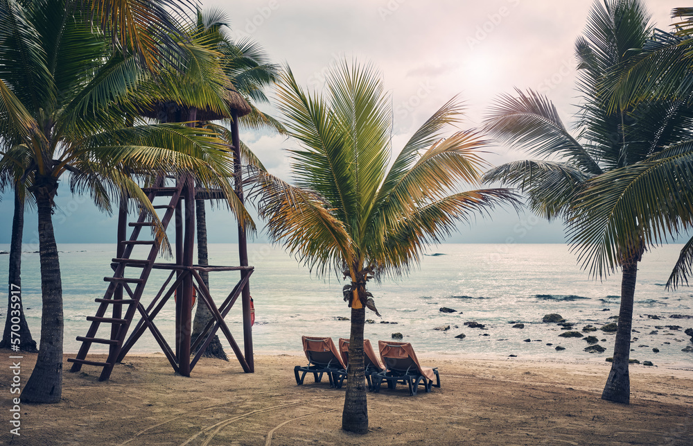 Color toned picture of an empty tropical beach, travel concept, Mexico.