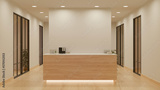 Luxury and contemporary lobby area interior design in white and wood style with reception counter