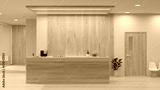 Luxury and minimalist hospital reception counter area in white and wood style with counter