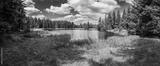 Mountain lake in the forest panorama