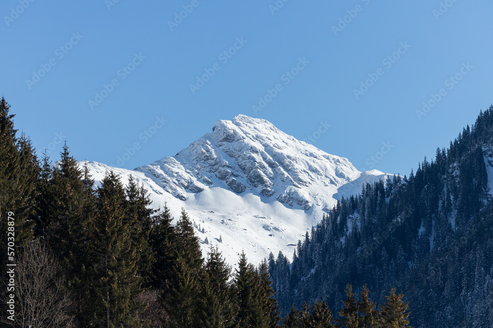 Bright sunlight over snow covered mountains in the Austrian Alps - Ski resort Ktizbühel, Tirol