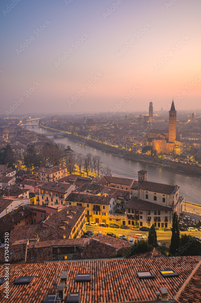 Ciy of Verona and Adige river aerial view, tourist destination in Veneto region of Italy