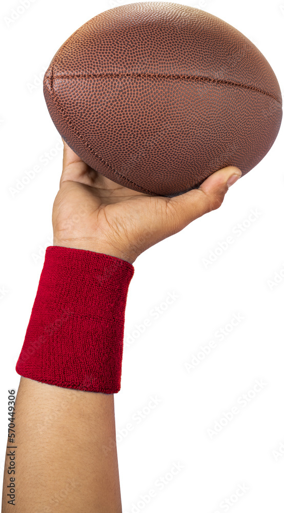 American football player about to throw the football ball isolated on white background, With PNG file.
