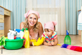 mother and her daughter ready to room cleaning
